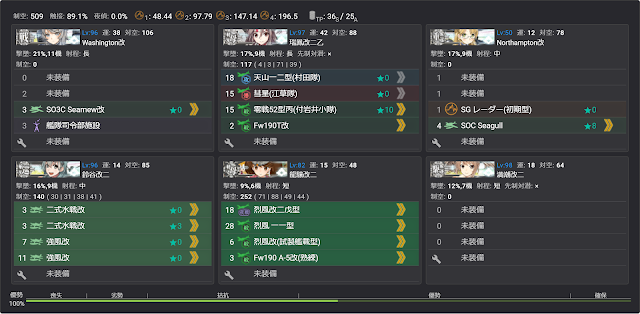 ただ、東海や道中支援を使うなら大破撤退の確率はかなり下がるので副砲で火力を上げて特殊砲撃の期待値を引き上げるとか、水戦を乗せて彩雲の枠を確保するとかした方が総合的な撃破率は高くなりそう。